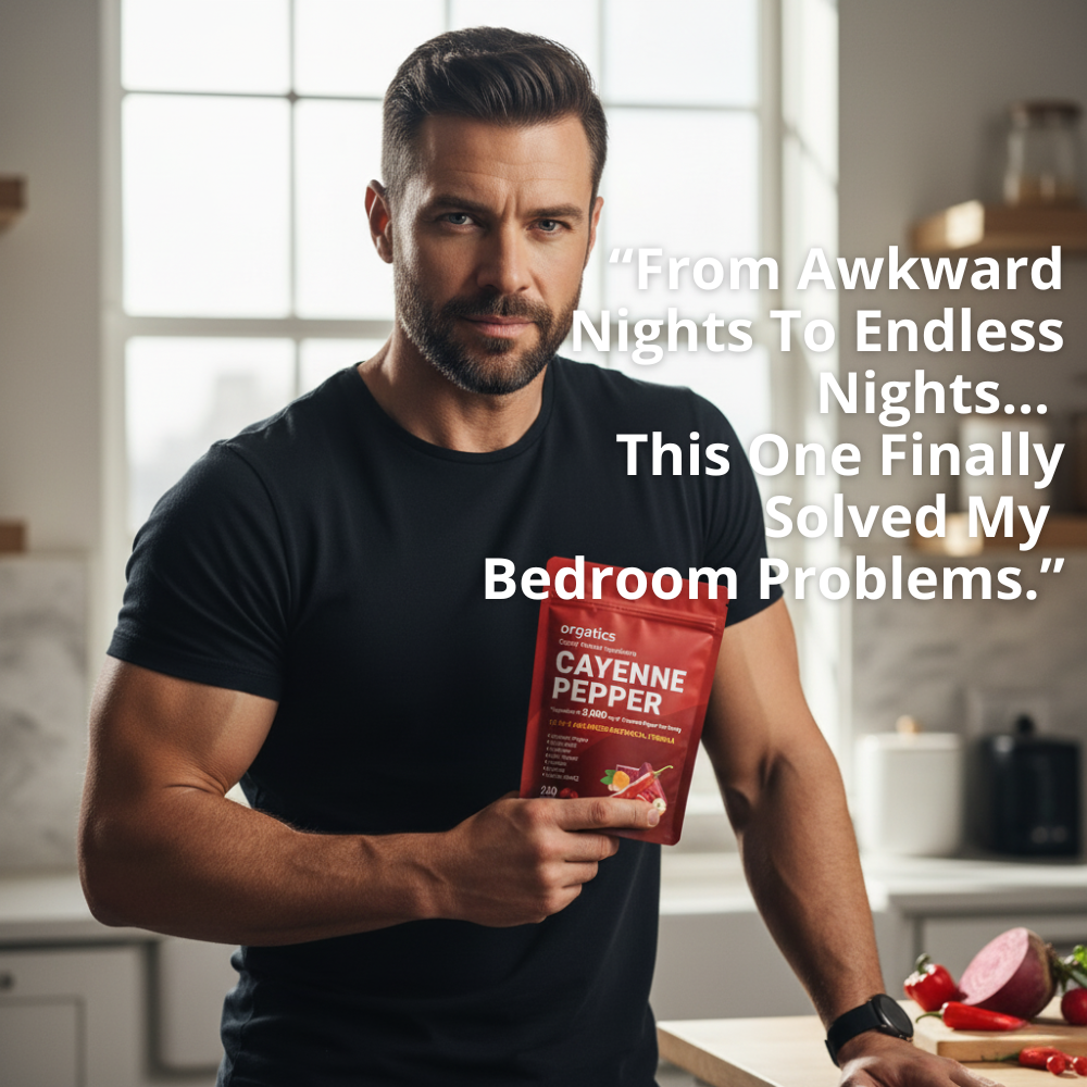 Discover the natural way to boost your bedroom performance and vitality. Packed with powerful Cayenne Pepper and circulation-supporting nutrients, our softgels help you feel stronger, last longer, and perform better — every single night.